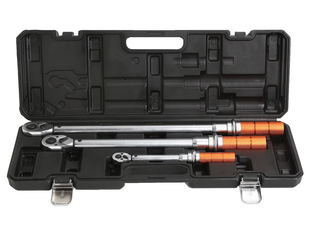 Sada momentových kľúčov s vodiacim štvorhranom1/4", 3/8", 1/2", celkový rozsah krútiaceho momentu 5-350 Nm, v plastovom kufríku, 3 ks - NEO tools 08-843