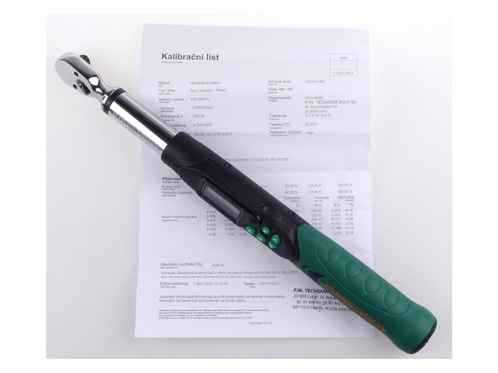 Momentový kľúč, presný, digitálny, 3/8", 6,8-135 Nm, 36z - JONNESWAY T24135