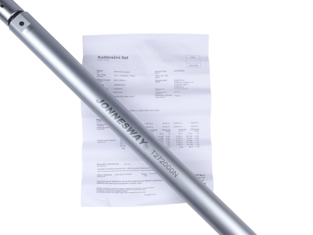 Každý kľúč je pred dodaním vyskúšaný a certifikovaný podľa DIN-ISO 6789. Kalibračný certifikát je dodávaný v češtine.