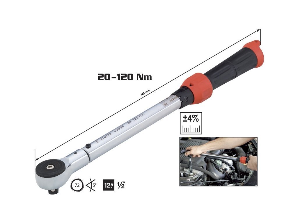 Momentový kľúč 1/2", 20-120 Nm, presnosť 4% - VIGOR V3898