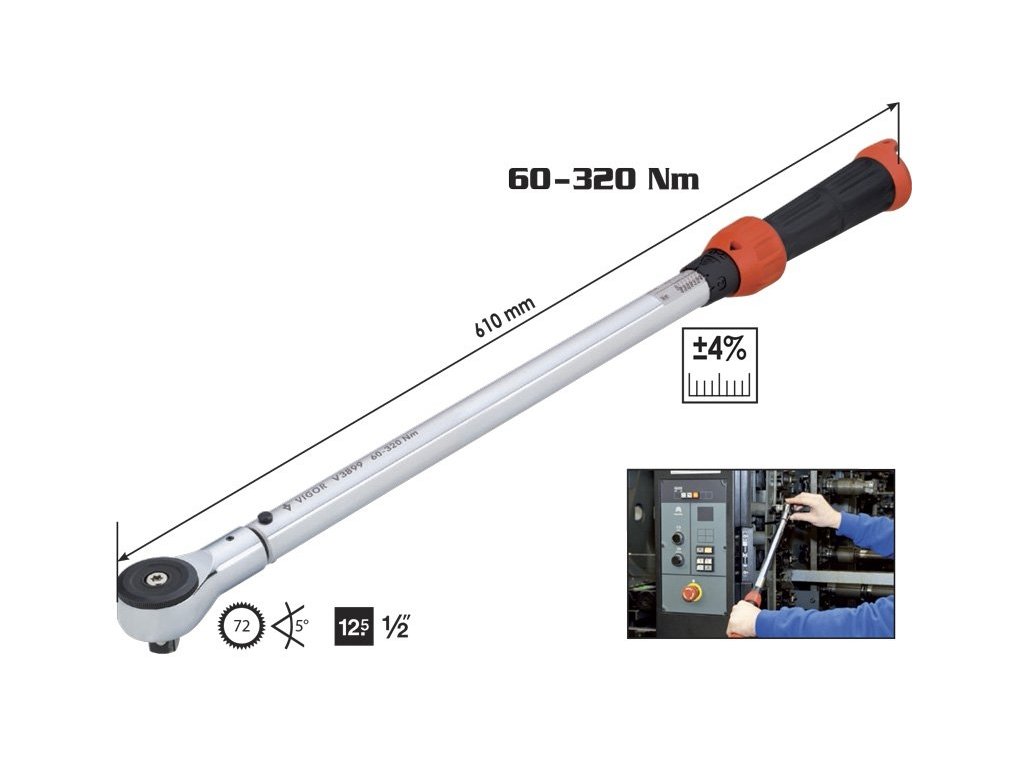 Momentový kľúč 1/2", 60-320 Nm, presnosť 4% - VIGOR V3899