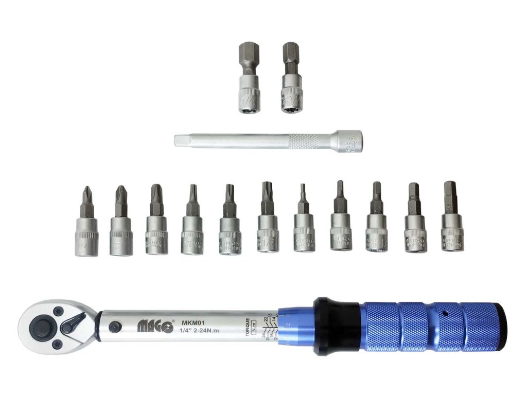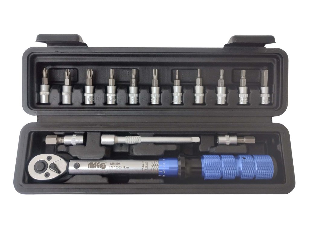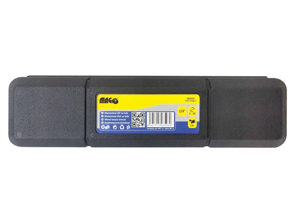 Momentový kľúč 1/4", 2-24 Nm, dĺžka 250 mm, kalibrovaný ± 3 %, Cr-V oceľ, s 13 nástavcami - MAGG MKM01.