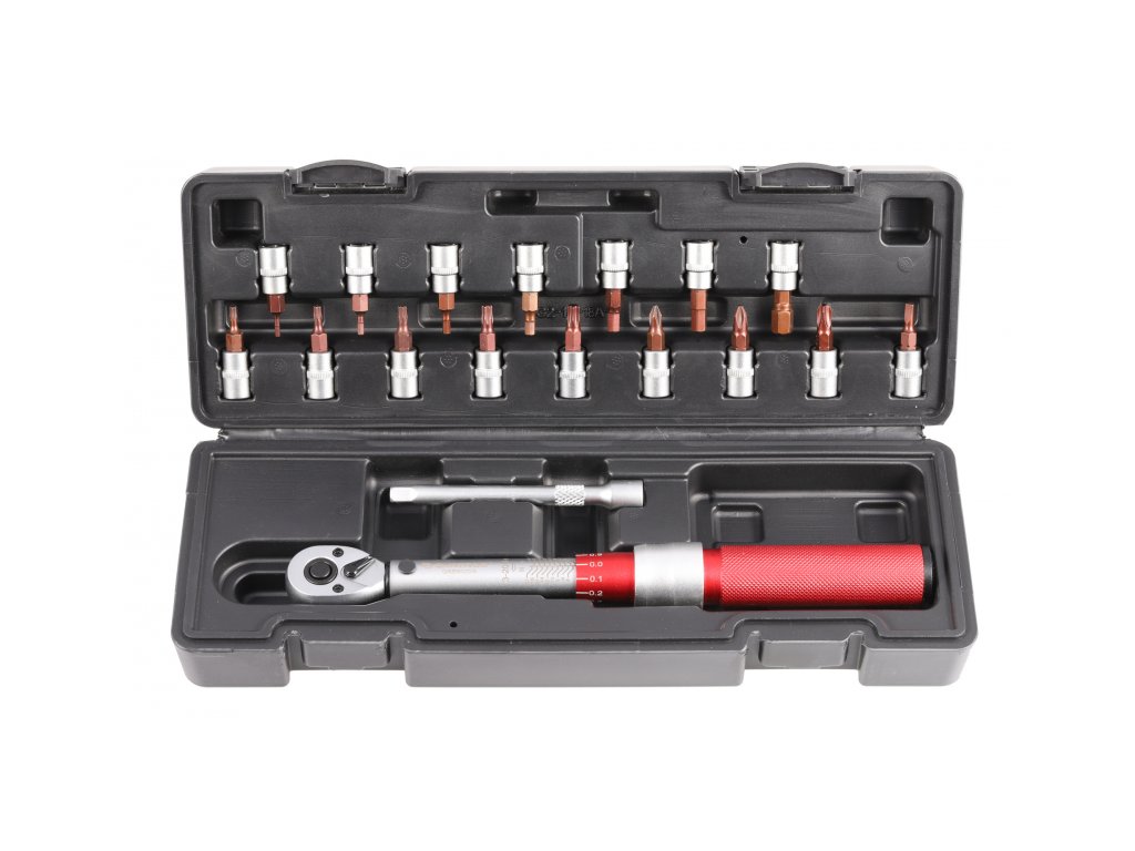 Momentový kľúč 1/4", 3-20 Nm, presnosť 3 %, s nástrčkami, 18 ks - QUATROS QS59003