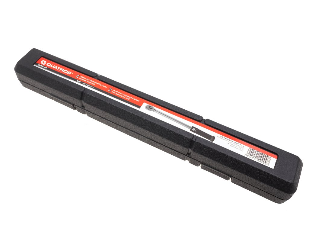 Momentový kľúč s rozsahom 10-60 Nm, štvorhranný, 3/8", prepínanie vľavo-vpravo, s kalibračným certifikátom v češtine, v plastovom kufríku - QUATROS QS58060