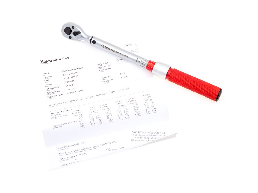 Momentový kľúč 3/8" 10-60 Nm, zvýšená presnosť 3 %, s certifikátom - QUATROS QS59060