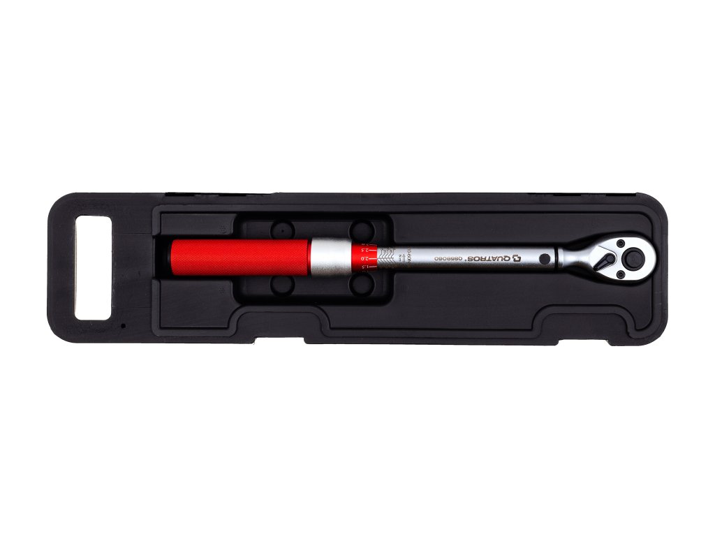 Momentový kľúč „momenťák“ s rozsahom 10-60 Nm, štvorhran 3/8”, vysoko presný, prepínanie vľavo-vpravo, s kalibračným certifikátom v slovenčine, v plastovej kazete – QUATROS QS59060