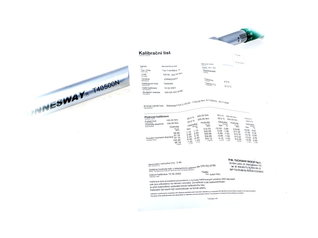 Momentový kľúč 3/4" 100-500 Nm, obojstranný vľavo-vpravo, certifikát - JONNESWAY T40500N