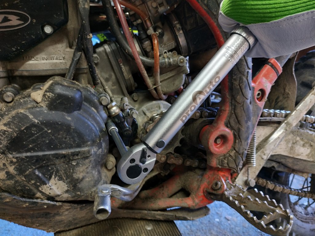 4. Pri dosiahnutí požadovaného momentu sa ozve hlasné "kliknutie". Potom treba prestať s doťahovaním skrutkového spoja.