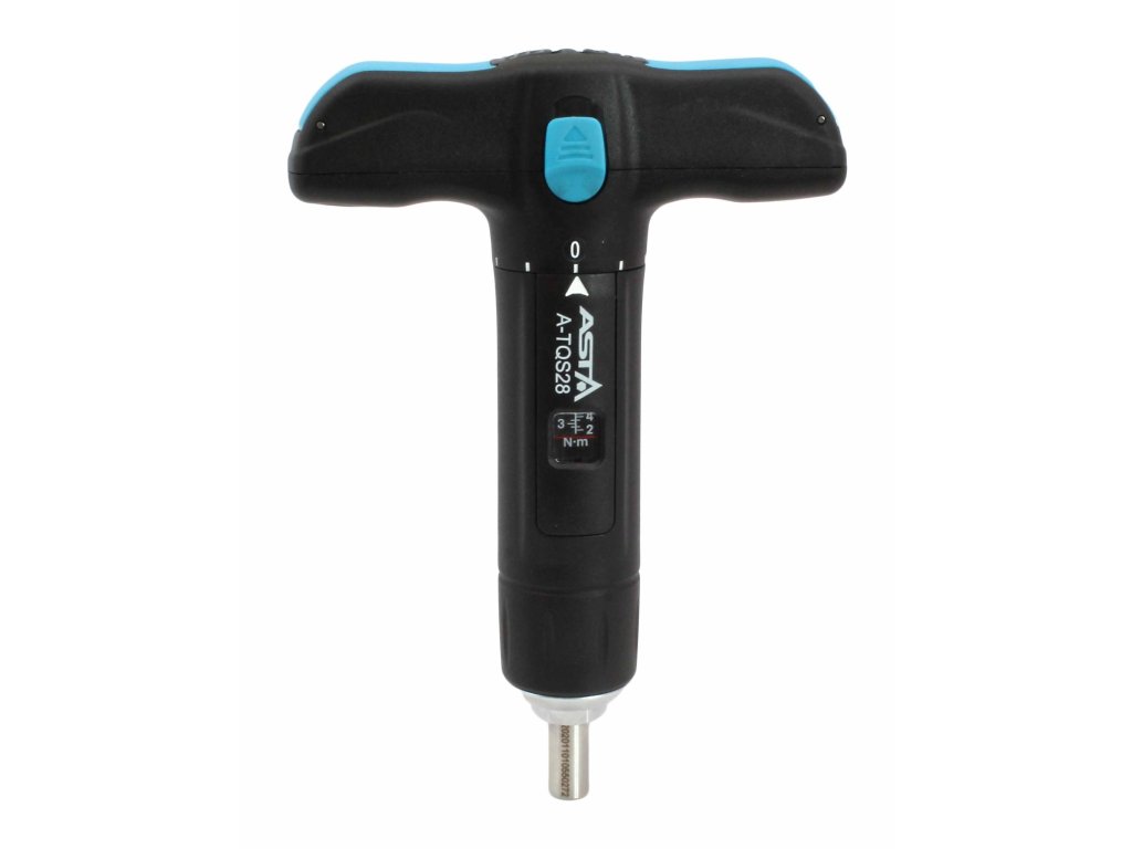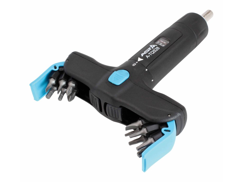Skrutkovač na bity s momentovým doťahovaním 2-8 newtonmetrov, veľkosť 1/4“, so súpravou 12 kusov bitov v rukoväti – ASTA A-TQS28