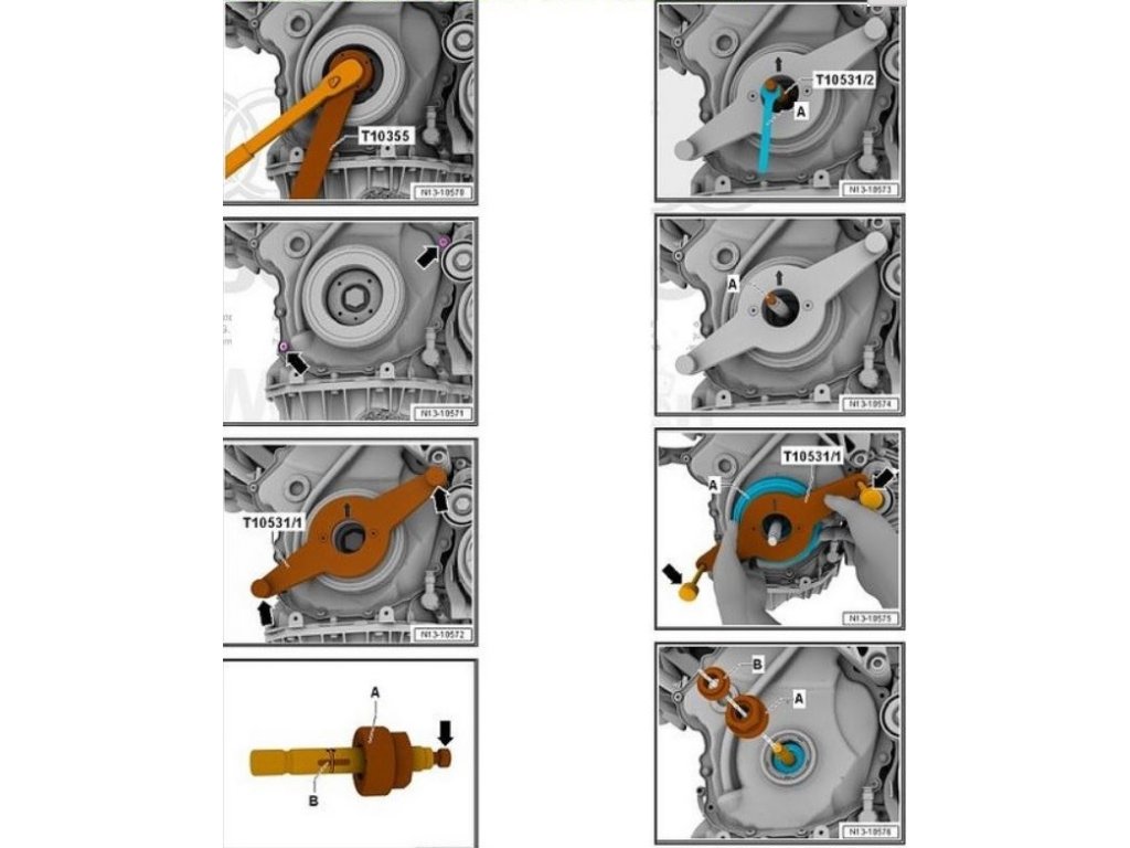 Sada je určená pre zaistenie nastavenie rozvodov v prípade, že je nutné demontovať tlmič vibrácií kľukového hriadeľa.