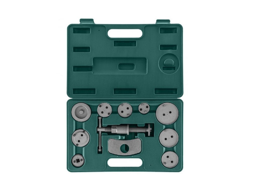 Táto praktická súprava obsahuje okrúhle koncovky pre rôzne značky výrobcov automobilov, vďaka ktorým je výmena brzdových doštičiek rýchla a jednoduchá.
