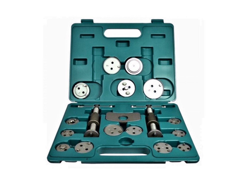 Táto praktická súprava obsahuje okrúhle koncovky pre rôzne značky výrobcov automobilov, vďaka ktorým je výmena brzdových doštičiek rýchla a jednoduchá.