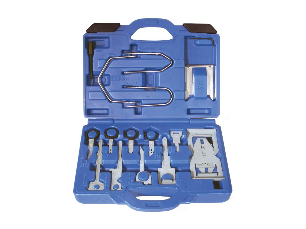 Pre montáž a demontáž prístrojových dosiek, zapaľovanie a autorádií.