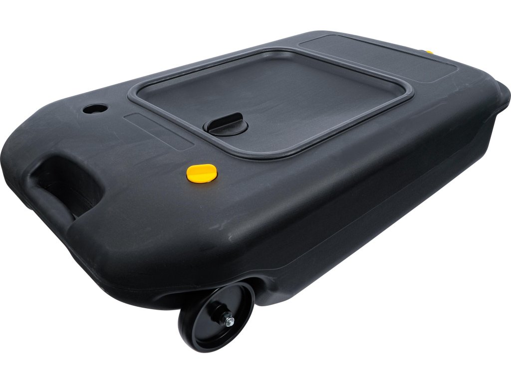 Jímka na zachytávanie vyjazdeného oleja a prevádzkových kvapalín vozidla, objem 40 litrov, pojazdná na kolieskach „kufor“, s madlami – BGS technic 8554
