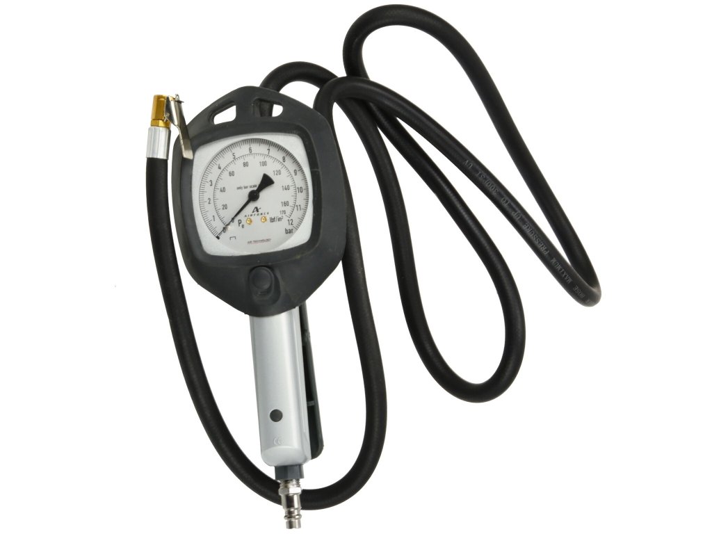 Jednoduché ovládanie je zaručené vďaka veľkému a prehľadnému manometru, veľkej spúšťacej páke a tlačidlu na uvoľnenie tlaku. Gumový kryt chráni nafukovačku pred možným poškodením.