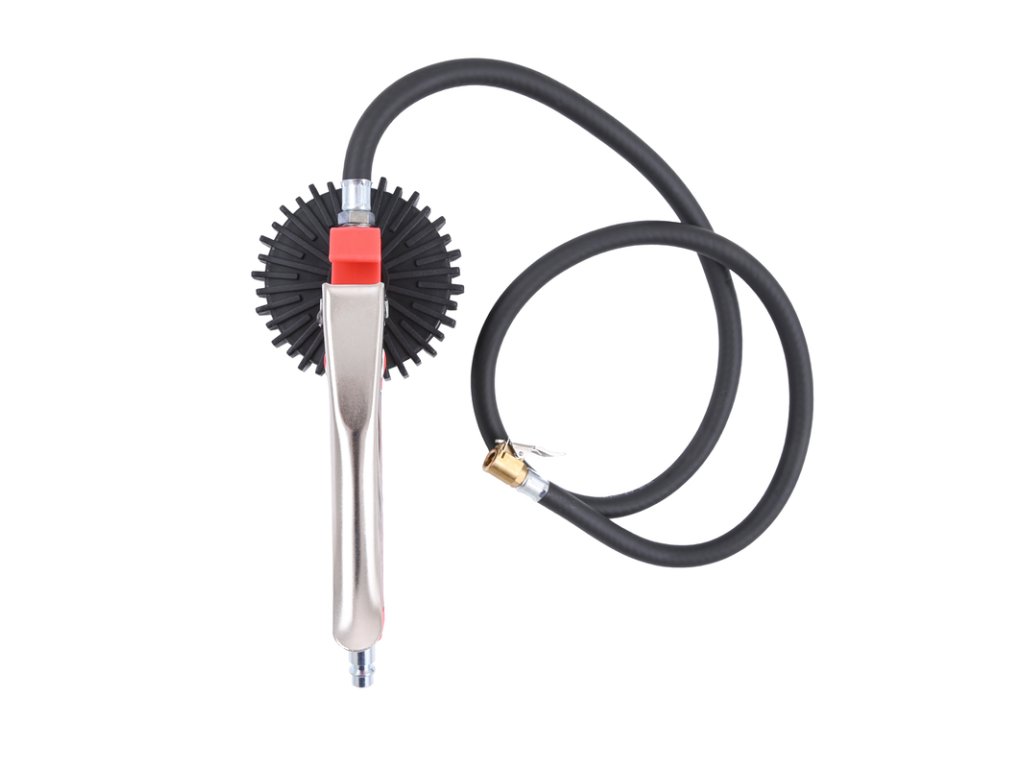 1 m dlhá hadica postačí na nafukovanie väčšiny pneumatík a vďaka poistnej koncovke nie je nutné hadicu na ventilku pridržiavať. Ergonomické držadlo umožňuje pohodlnú manipuláciu aj pri dlhodobej práci.
