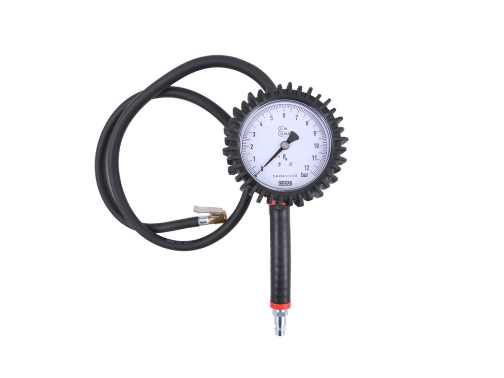 Prehľadne čitateľný manometer s priemerom 80 mm odstupňovaný po 0,1 bar je chránený gumovým obalom proti rozbitiu.