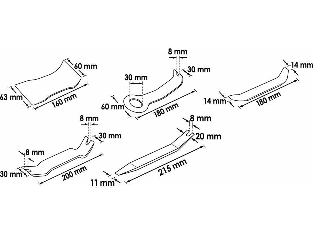 5-dielna sada prípravkov pre demontáž príchytiek a líšt - Vigor V1369