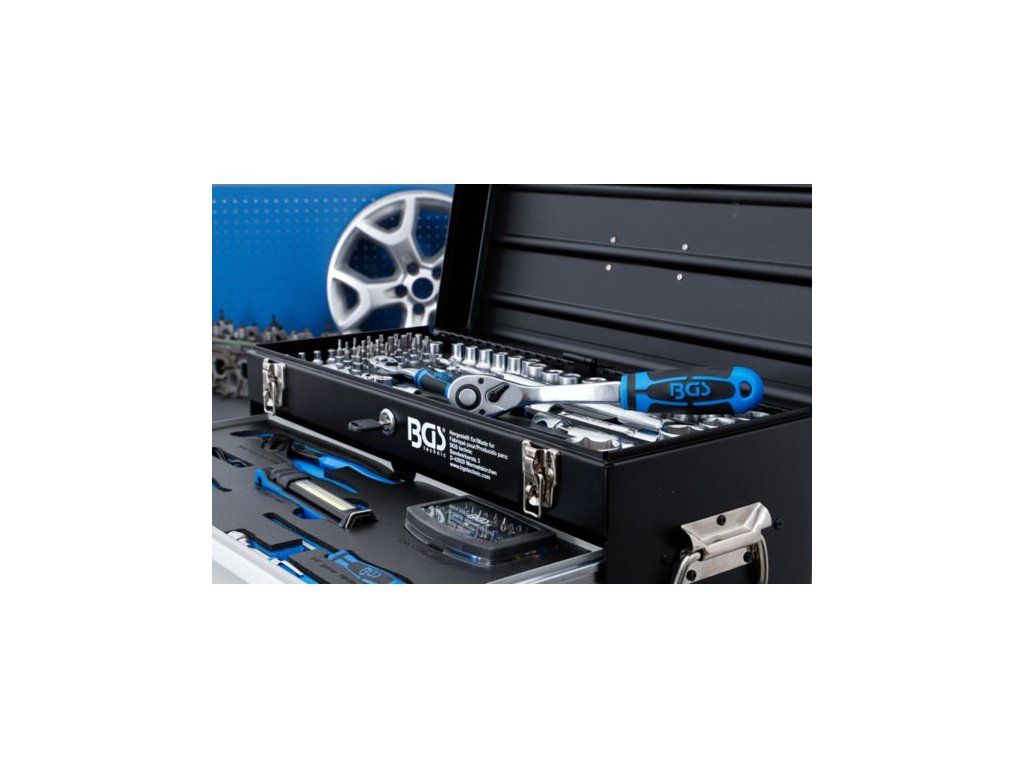 Sada 147 kusov technického náradia BGS na elektroinštalačné práce v kovovom kufríku Ideálna kombinácia náradia na použitie pri elektroinštalácii, zásuvky, spínacie račne, kliešte VDE, VDE skrutkovače a očkové kľúče z chróm-vanádiovej ocele čiastočne vybavené izolovaným náradím a testované podľa DIN EN/IEC 60900 147-dielna súprava ponúka široký výber náradia a je vhodná na rôzne aplikácie V robustnom kovovom kufríku so 4 penovými vložkami z vysokokvalitnej, pevnej tuhej peny, takže každý nástroj má svoje miesto Kufrík je uzamykateľný, zámok s optickou kontrolou stavu 1 horná priehradka s vekom 3 zásuvky Max. Nosnosť 1. až 3. zásuvky 6 kg (každá zásuvka) Max. 20 kg Centrálne uzamykanie všetkých zásuviek otváraním a zatváraním veka 2 kovové rukoväte po stranách 1 plastová rukoväť na hornej strane Vnútorné rozmery priehradky (š × h × v) 515 × 215 × 90 mm Nástrčné hlavice, račne, kliešte VDE, skrutkovače VDE a očkové kľúče z chróm-vanádiovej ocele Povrchová úprava: BGS 2474] 1 nástrčná hlavica, šesťhran | 6,3 mm (1/4") | 4 mm [BGS 2474] 1 nástrčná hlavica, šesťhran | 6,3 mm (1/4") | 4,5 mm [BGS 2475] 1 nástrčka, šesťhran | 6,3 mm (1/4") | 5 mm [BGS 2476] 1 nástrčka, šesťhran | 6,3 mm (1/4") | 5,5 mm [BGS 2477] 1 nástrčka, šesťhran | 6,3 mm (1/4") | 6 mm [BGS 2478] 1 nástrčka, šesťhran | 6,3 mm (1/4") | 7 mm [BGS 2479] 1 nástrčka, šesťhran | 6,3 mm (1/4") | 8 mm [BGS 2480] 1 nástrčka, šesťhran | 6,3 mm (1/4") | 9 mm [BGS 2481] 1 nástrčka, šesťhran | 6,3 mm (1/4") | 10 mm [BGS 2482] 1 nástrčka, šesťhran | 6,3 mm (1/4") | 11 mm [BGS 2483] 1 nástrčka, šesťhran | 6,3 mm (1/4") | 12 mm [BGS 2484] 1 nástrčka, šesťhran | 6,3 mm (1/4") | 13 mm [BGS 2485] 1 nástrčka, šesťhran | 6,3 mm (1/4") | 14 mm [BGS 2486] 1 nástrčka, profil E | 6,3 mm (1/4") | E4 [BGS 6404] 1 zásuvka, profil E | 6,3 mm (1/4") | E5 [BGS 6405] 1 zásuvka, profil E | 6,3 mm (1/4") | E6 [BGS 6406] 1 zásuvka, profil E | 6,3 mm (1/4") | E7 [BGS 6407] 1 zásuvka, profil E | 6,3 mm (1/4") | E8 [BGS 6408] 1 zásuvka, profil E | 6,3 mm (1/4") | E10 [BGS 6430] 1 zásuvka, šesťhranná, predĺžená | 6,3 mm (1/4") | 8 mm [BGS 10508] 1 zásuvka, šesťhranná, predĺžená | 6,3 mm (1/4") | 10 mm [BGS 10510] 1 zásuvka, šesťhranná, predĺžená | 6,3 mm (1/4") | 11 mm [BGS 10511] 1 zásuvka, šesťhranná, predĺžená | 6,3 mm (1/4") | 12 mm [BGS 10512] 1 nástrčka, šesťhranná, predĺžená | 6,3 mm (1/4") | 13 mm [BGS 10513] 1 nástrčka, šesťhranná, predĺžená | 6,3 mm (1/4") | 14 mm [BGS 10514] 1 nástrčná hlavica | 6,3 mm (1/4") | T-profil (pre Torx) s otvorom T10 ( BGS 2357] 1 nástrčná hlavica | 6,3 mm (1/4") | T-profil (pre Torx) s otvorom T15 ( BGS 2358] 1 nástrčná hlavica | 6,3 mm (1/4") | T-profil (pre Torx) s otvorom T20 ( BGS 2359] 1 nástrčná hlavica | 6,3 mm (1/4") | T-profil (pre Torx) s otvorom T25 ( BGS 2360] 1 nástrčná hlavica | 6,3 mm (1/4") | T-profil (pre Torx) s otvorom T30 ( BGS 2362] 1 nástrčná hlavica | 6,3 mm (1/4") | T-profil (pre Torx) s otvorom T40 ( BGS 2363] 1 nástrčná hlavica | 6,3 mm (1/4") | vnútorný šesťhran 3 mm [BGS 2497] 1 nástrčná hlava | 6,3 mm (1/4") | vnútorný šesťhran 4 mm [BGS 2498] 1 nástrčná hlava | 6,3 mm (1/4") | vnútorný šesťhran 5 mm [BGS 2499] 1 nástrčná hlava | 6,3 mm (1/4") | vnútorný šesťuholník 6 mm [BGS 2500] 1 nástrčná hlava | 6,3 mm (1/4") | vnútorný šesťuholník 7 mm [BGS 2501] 1 nástrčná hlava | 6,3 mm (1/4") | vnútorný šesťuholník 8 mm [BGS 2502] 1 nástrčná hlava | 6,3 mm (1/4") | krížová drážka PH1 [BGS 2487] 1 nástrčná hlava | 6,3 mm (1/4") | krížová drážka PH2 [BGS 2488] 1 nástrčná hlava | 6,3 mm (1/4") | krížová drážka PH3 [BGS 2489] 1 nástrčná hlava | 6,3 mm (1/4") | 4 mm drážka [BGS 2493] 1 nástrčná hlava | 6,3 mm (1/4") | 5,5 mm drážka [BGS 2494] 1 nástrčná hlava | 6,3 mm (1/4") | 6,5 mm drážka [BGS 2495] 1 závesný nástavec | 6,3 mm (1/4") | 50 mm [BGS 2232] 1 závesný nástavec | 6,3 mm (1/4") | 100 mm [BGS 2231] 1 posuvná rukoväť | 6,3 mm (1/4") [BGS 276] 1 kardanový kĺb | 6,3 mm (1/4") [BGS 250] 1 prepínacia račňa 1/2" | jemné ozubenie [BGS 632] 1 nástr, 1 nástrčka, šesťhran | 12,5 mm (1/2") | 8 mm [BGS 2908] 1 nástrčka, šesťhran | 12,5 mm (1/2") | 9 mm [BGS 2909] 1 nástrčka, šesťhran | 12,5 mm (1/2") | 10 mm [BGS 2910] 1 nástrčka, šesťhran | 12,5 mm (1/2") | 11 mm [BGS 2911] 1 nástrčka, šesťhran | 12,5 mm (1/2") | 12 mm [BGS 2912] 1 nástrčka, šesťhran | 12,5 mm (1/2") | 13 mm [BGS 2913] 1 nástrčka, šesťhran | 12,5 mm (1/2") | 14 mm [BGS 2914] 1 nástrčka, šesťhran | 12,5 mm (1/2") | 15 mm [BGS 2915] 1 nástrčka, šesťhran | 12,5 mm (1/2") | 16 mm [BGS 2916] 1 nástrčka, šesťhran | 12,5 mm (1/2") | 17 mm [BGS 2917] 1 nástrčka, šesťhran | 12,5 mm (1/2") | 18 mm [BGS 2918] 1 nástrčka, šesťhran | 12,5 mm (1/2") | 19 mm [BGS 2919] 1 nástrčka, šesťhran | 12,5 mm (1/2") | 20 mm [BGS 2920] 1 nástrčka, šesťhran | 12,5 mm (1/2") | 21 mm [BGS 2921] 1 nástrčka, Šesťhran | 12,5 mm (1/2") | 22 mm [BGS 2922] 1 nástrčka, šesťhran | 12,5 mm (1/2") | 24 mm [BGS 2924] 1 nástrčka, šesťhran | 12,5 mm (1/2") | 27 mm [BGS 2927] 1 nástrčka, Šesťhran | 12,5 mm (1/2") | 30 mm [BGS 2930] 1 nástrčka, šesťhran | 12,5 mm (1/2") | 32 mm [BGS 2932] 1 nástrčka, profil E | 12,5 mm (1/2") | E11 [BGS 6461] 1 nástrčka pre zapaľovacie sviečky, šesťhran | 12,5 mm (1/2") | 16 mm [BGS 2472] 1 nástrčka pre zapaľovacie sviečky, šesťhran | 12,5 mm (1/2") | 21 mm [BGS 2470] 1 výklopný nadstavec | 12,5 mm (1/2") | 125 mm [BGS 234] 1 výklopný nadstavec | 12,5 mm (1/2") | 250 mm [BGS 235] 1 adaptér na posuvnú rukoväť pre nadstavec | 12,5 mm (1/2") [BGS 289] 1 kardanový kĺb | 12,5 mm (1/2") [BGS 251] 1 posuvná rukoväť | 6,3 mm (1/4") [BGS 276] 1 