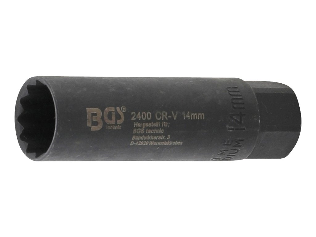 Hlavica nástrčná pre zapaľovacie sviečky 3/8" x 14mm, dĺžka 65mm, s veľmi malým vonkajším priemerom vhodný pre úzke otvory v priestoroch (šachte) zapaľovacích sviečok - BGS 2400