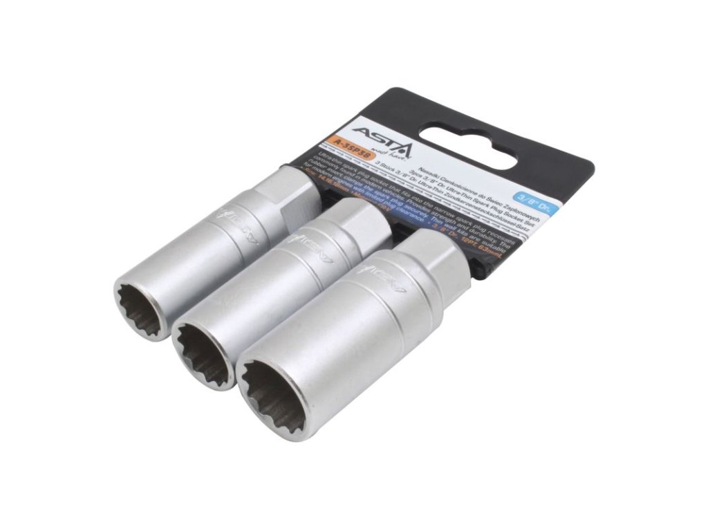 Nástrčky na zapaľovacie sviečky, extra tenké, 3/8", 12 hrán, 14, 16, 18 mm, 3 ks - ASTA