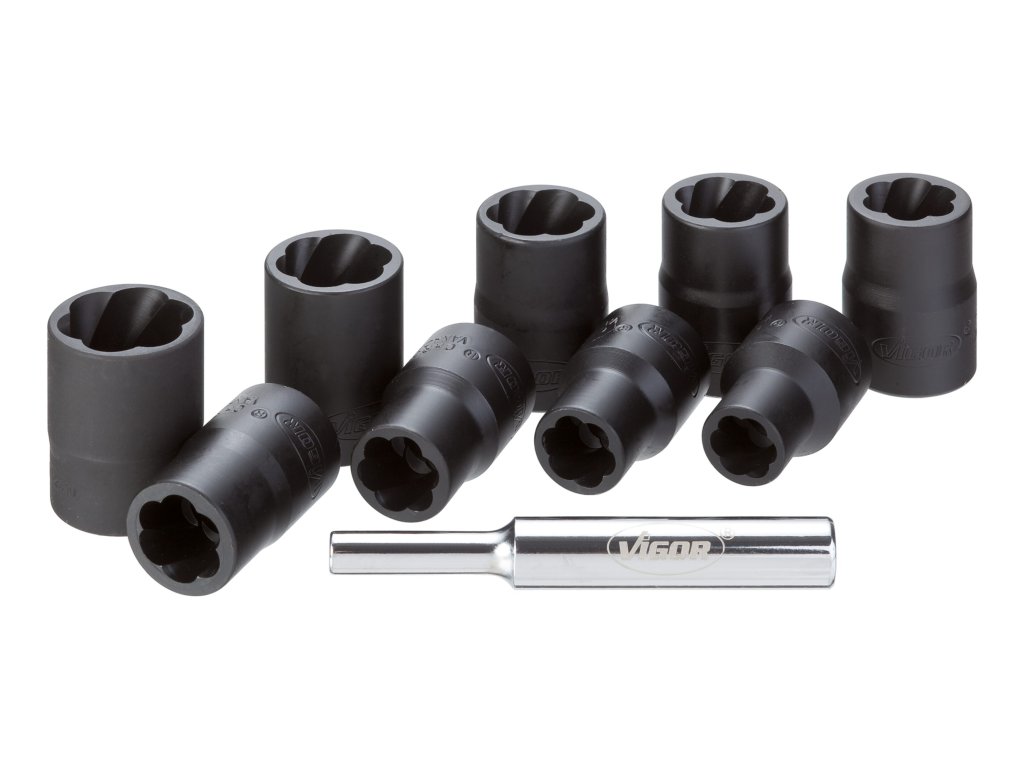 9 dielna sada hlavíc pre povolenie skrutiek / matíc s poškodeným šesťhranom- Vigor