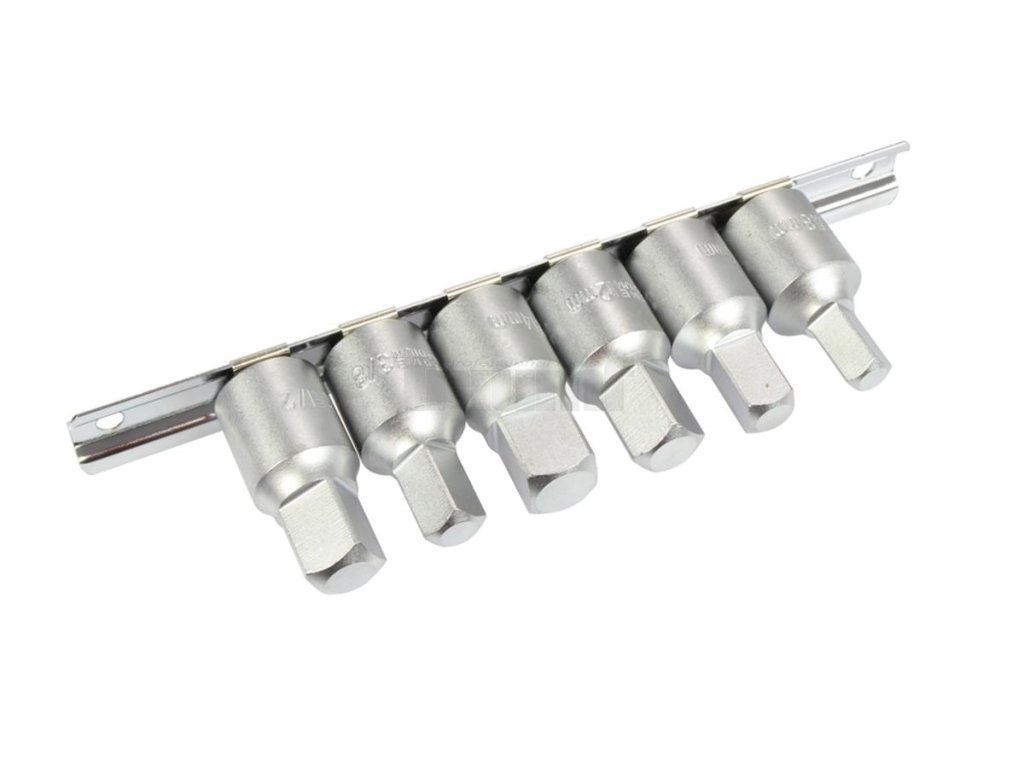 Sada nástrčných hlavíc so štvorcovým vedením 1/2" na montáž a demontáž vypúšťacích zátok oleja, sada 6 kusov, na lište alebo v plastovej kazete - Condor
