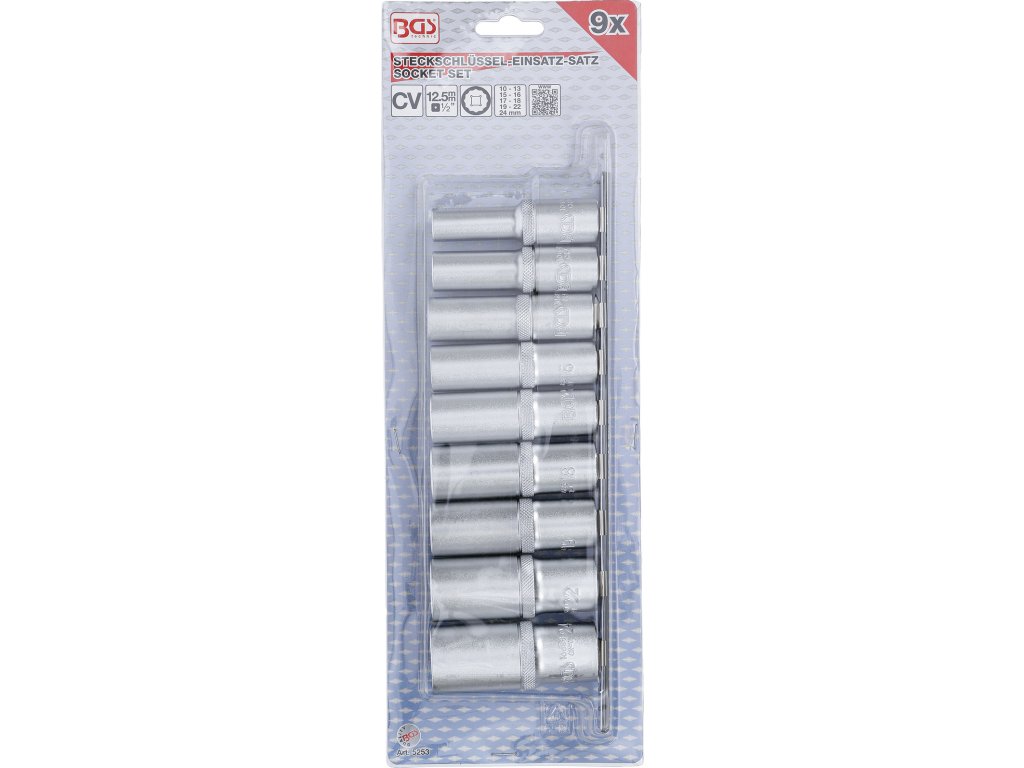 Hlavice nástrčné 1/2" 10-24 mm, 12hranné, predĺžené, 9 dielov - BGS 5253