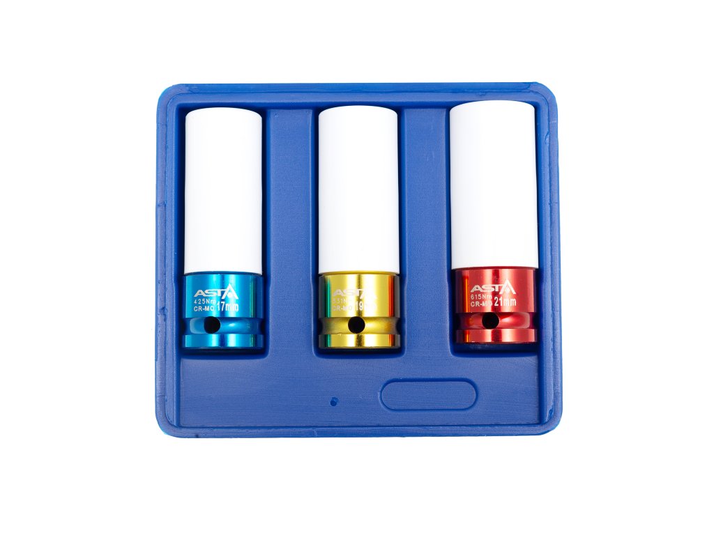 Úderovej hlavice 1/2 ", 17 - 21 mm, s krytkou na ALU kolesá, súprava 3 ks - ASTA