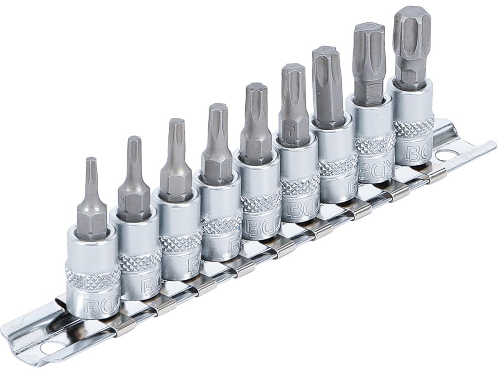 Zástrčné hlavice 1/4" TORX T10-T50, sada 9 ks na lište - BGS 2164