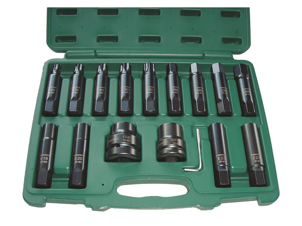 Sada úderových bitov Imbus, Torx a Torx E, 3/4" a 1", 16 kusov - JONNESWAY AI050113