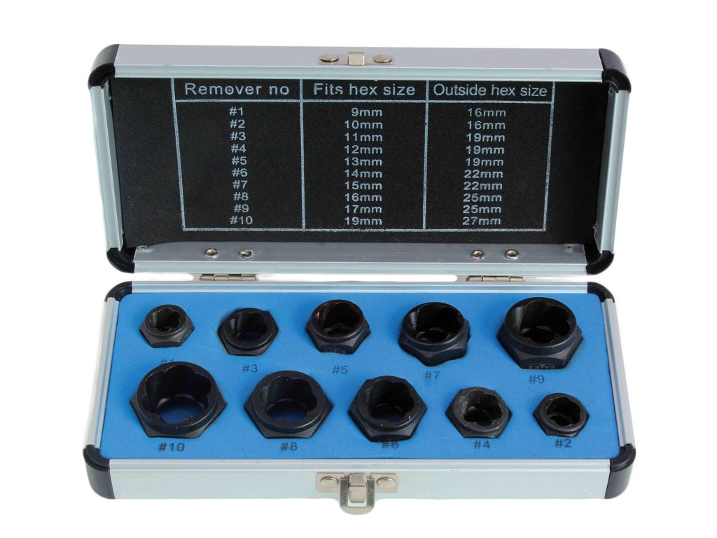 Hlavice nástrčné pre poškodené skrutky 3/8", 9 - 19 mm, nízkoprofilové, sada 10 kusov