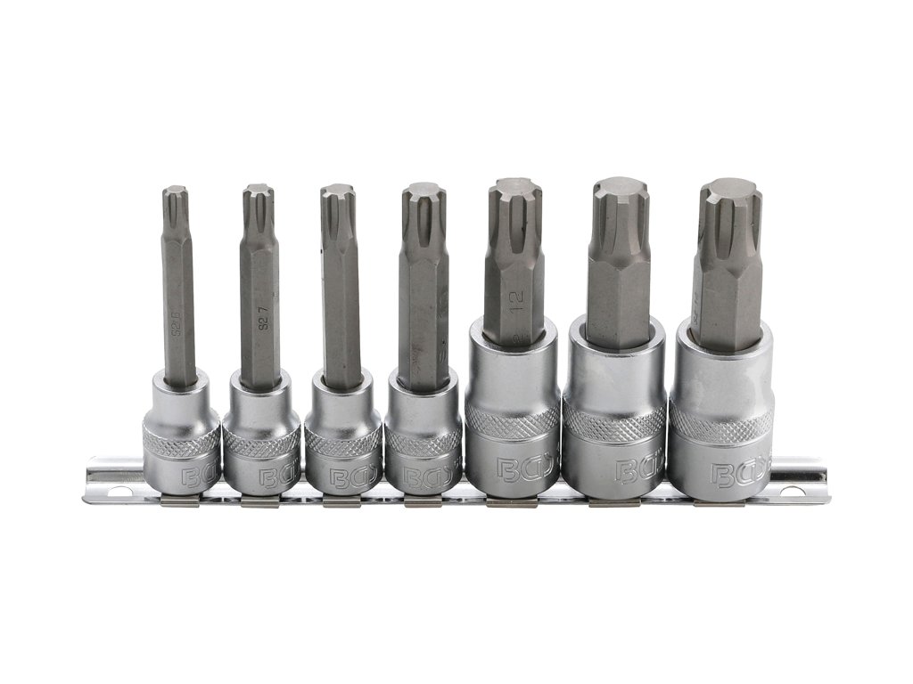 RIBE (Polydrive) profilové zásuvky, 4 vodiace hrany 3/8" 1/2", sada 7 dielov na lište - BGS technical 5185