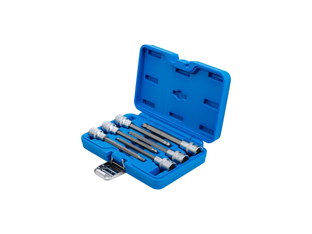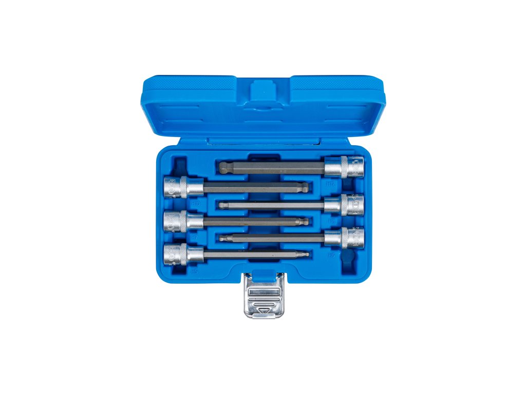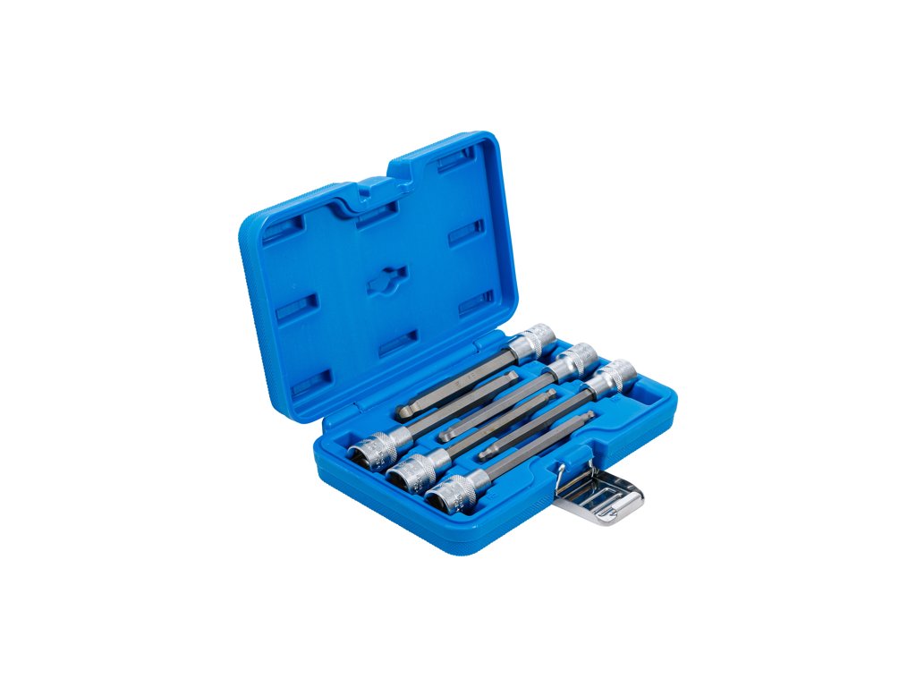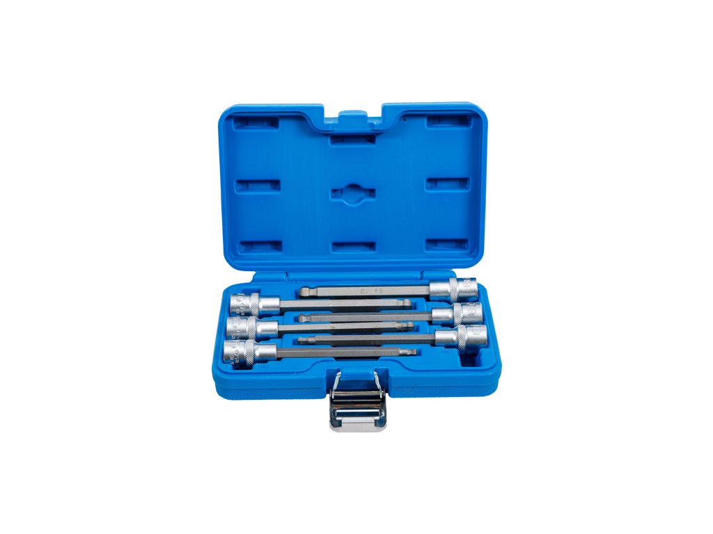 Predĺžené bitové zásuvky profil Imbus s guľovou hlavou, vodiaci štvorhran 1/2", jednotná dĺžka 14 cm, sada 6 dielov v plastovom puzdre - BGS technical 4258