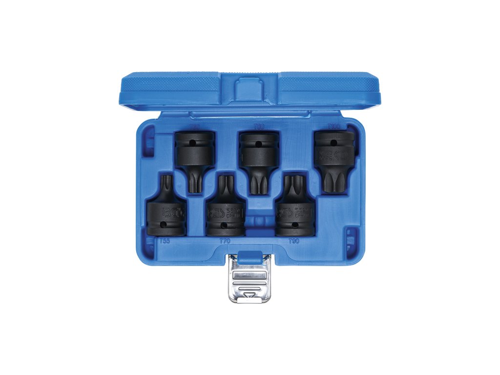 Torx profilové nástrčné hlavice, rázový uťahovač, 3/4" vedenie, jednotná dĺžka 60 mm, sada 6 dielov v plastovom kufríku - BGS technical 5097