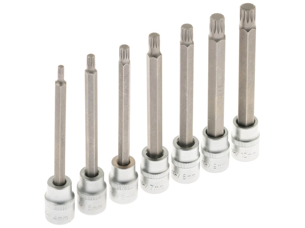 Zástrčné hlavice XZN (Spline) 3/8", rozmery M4 - M10, predĺžené 110 mm, sada 7 kusov