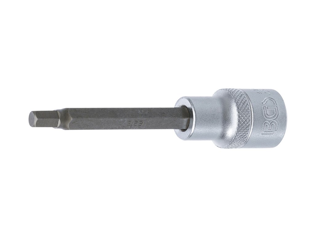 Zástrčný kľúč – hlavica profilu Imbus (6hran) H6, vodiaci 4hran 1/2“, dĺžka 10 cm – BGS technic 4261