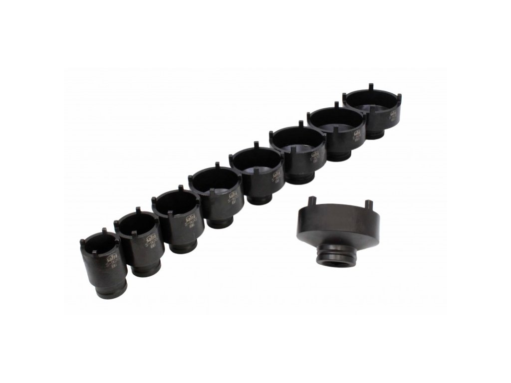 Užitočná sada nástrčných kľúčov je určená na odskrutkovanie a dotiahnutie zárezov pri montáži/demontáži ložísk a ozubených kolies na hriadeľoch, upínacích puzdrách a axiálnych puzdrách v nákladných vozidlách, stavebných strojoch a pod.