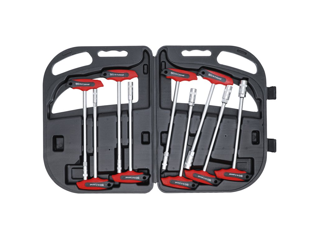Šesťhranné nástrčné kľúče, rozmery 6 až 14 mm, dĺžka cca 270 mm, s T-rukoväťou, sada 9 kusov v plastovom držiaku - BGS do it yourself 7881