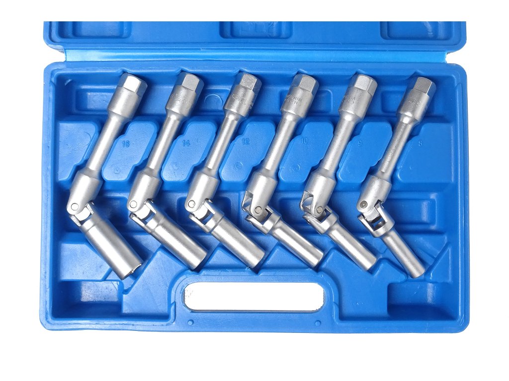 Nástrčné kĺbové kľúče 3/8", na sviečky, veľkosť 8-16 mm, sada 6 kusov - Quatros QS20377