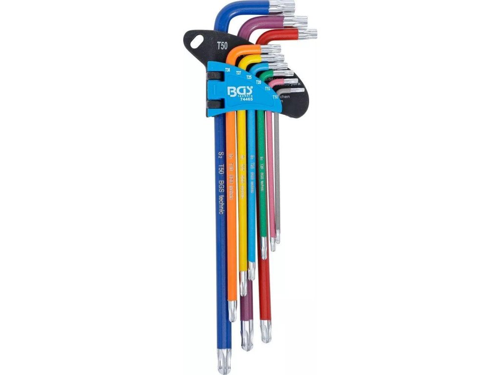 Nástrčné kľúče Torx T10-T50, farebné, extra dlhé, s guličkou, 9 ks - BGS 74465