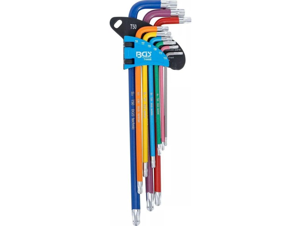 Nástrčné kľúče Torx T10-T50, farebné, extra dlhé, s guľôčkou - BGS 74468
