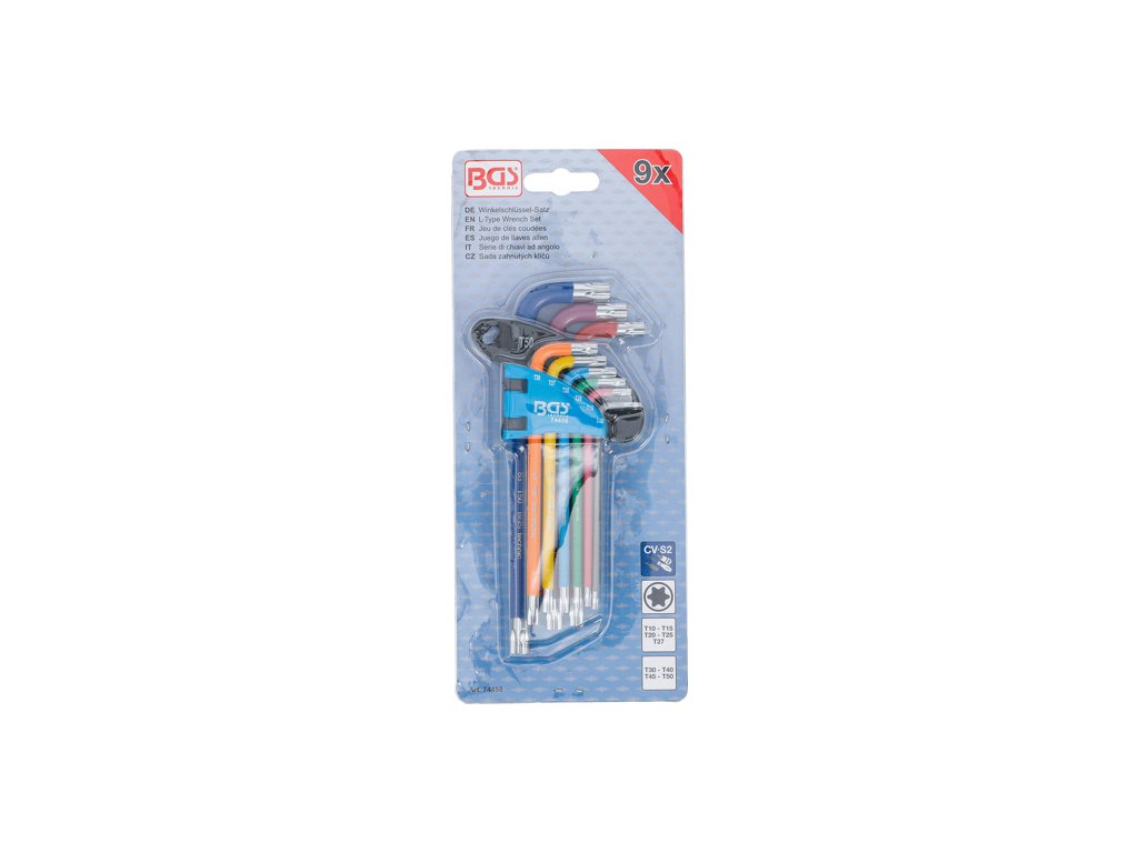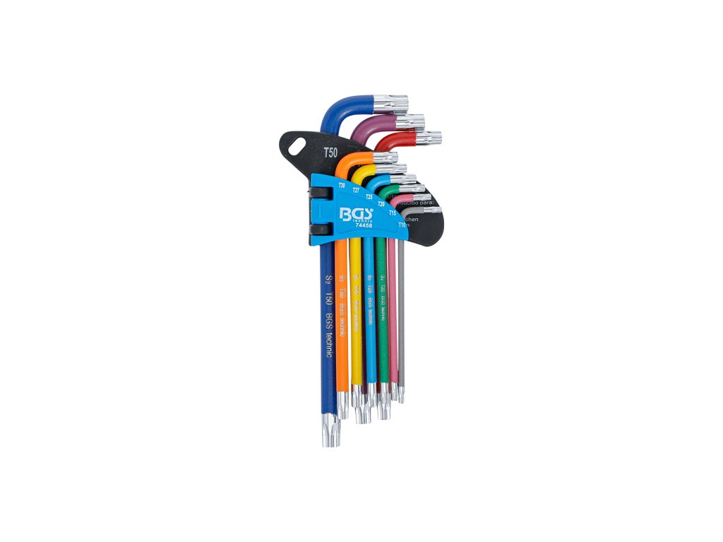Praktická sada farebných kľúčov Torx, veľkosť T10-T50, sada 9 kusov - BGS Technic 74458