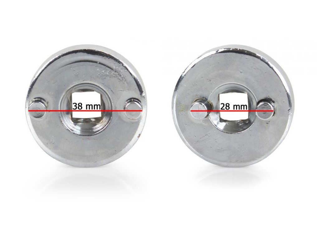 Súčasťou je obojstranný adaptér s dvojakým rozstupom kolíčkov pre skrutkovanie piestov: 28 a 38 mm. Po usadení správneho rozmeru na piestok ho možno začať skrutkovať a stláčať späť.