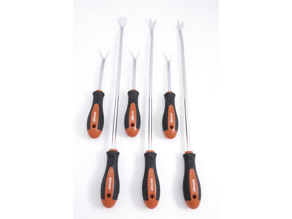 Súprava dlhých a krátkych nástrojov na vyťahovanie plastových spojovacích prvkov čalúnenia a iného interiérového obloženia.