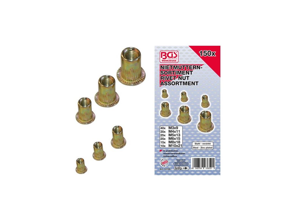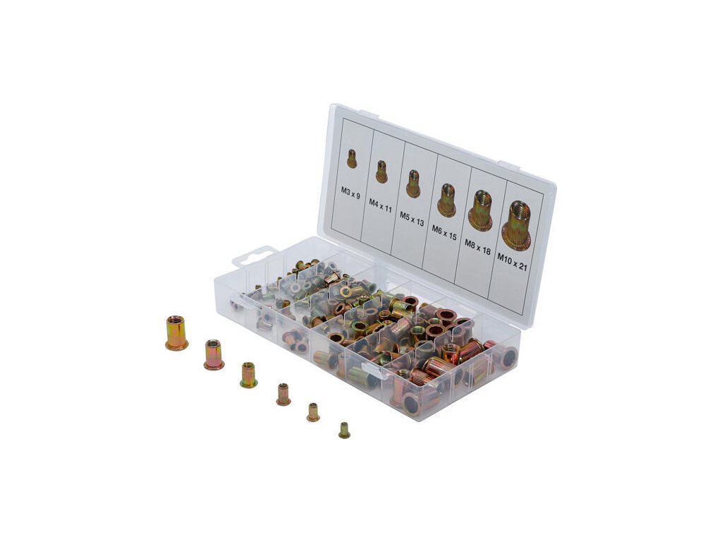 Sada maticových nitov, tzv. nitovacích matíc, rozmery M3-M10, 150 kusov v plastovej krabičke – BGS technic 14126