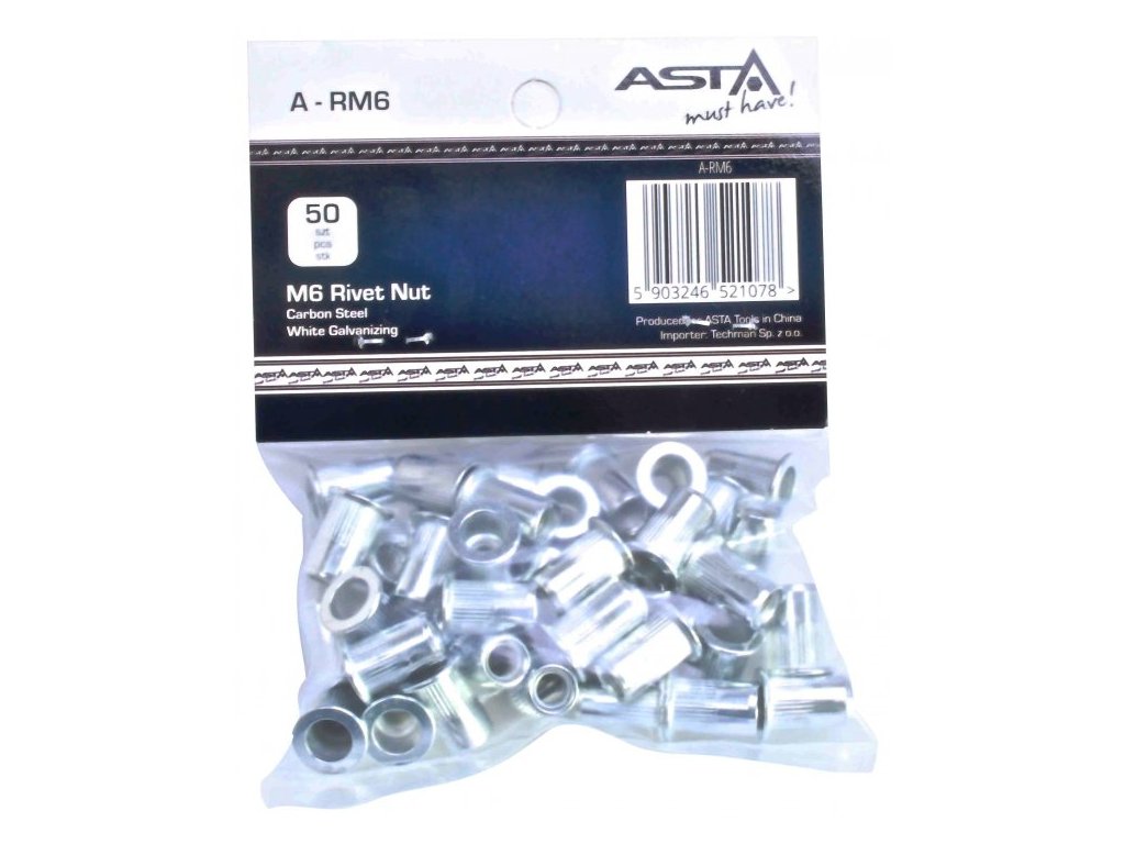 Maticové nity - nitovacie matice s plochou hlavou, oceľ, rôzne rozmery, balenie 50 kusov