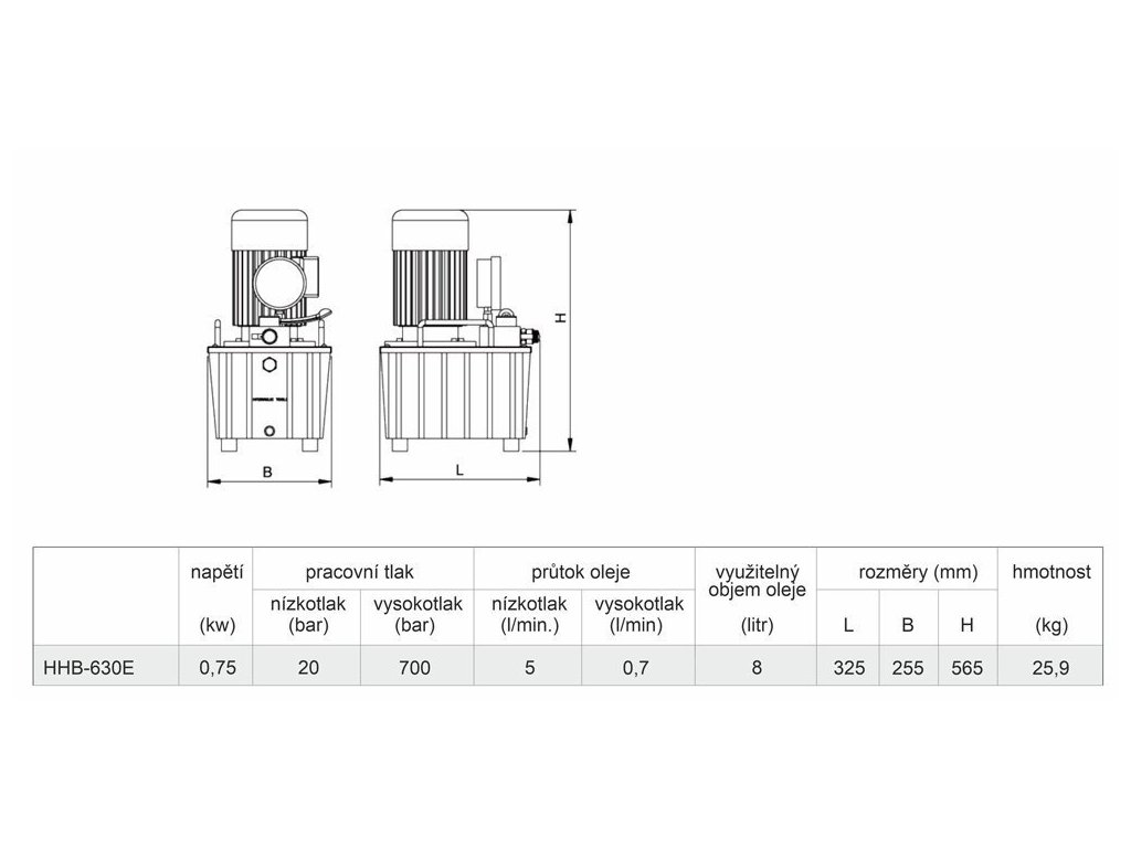 Elektrická hydraulická pumpa na elektrický pohon 230 V, pracovný tlak 700 bar, dvojrýchlostný - Genborx HHB-630E