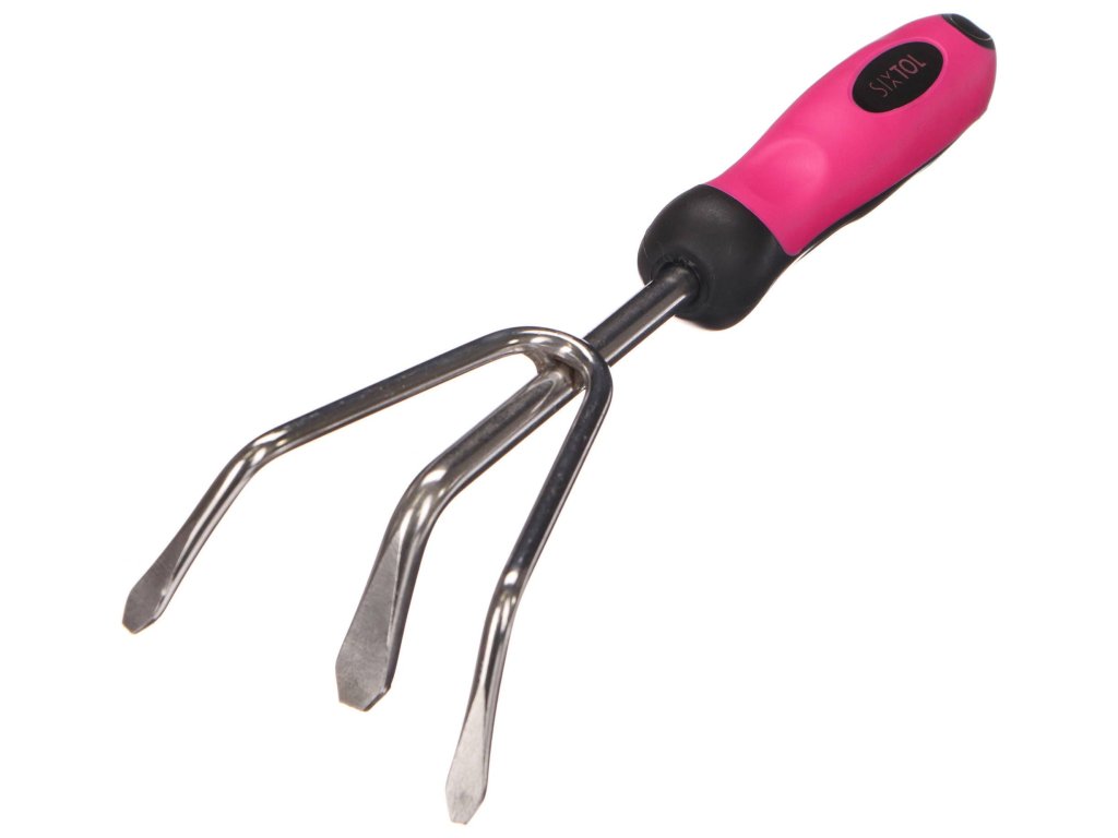 Ručný kultivátor z nehrdzavejúcej ocele, dĺžka 28 cm, v ružovej farbe - SIXTOL SX6032.