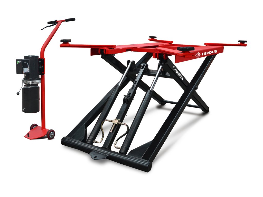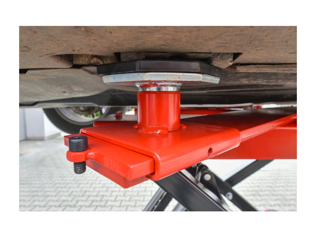 Nožnicový mechanizmus roluje pri zdvíhaní alebo spúšťaní svoju voľnú stranou priamo po podlahe (tento systém vyžaduje rovnú betónovú podlahu). Zdvihák je vybavený plošinami s predĺženými ramenami, ktoré zaisťujú rovnomerné rozloženie váhy automobilu pri zdvíhaní.